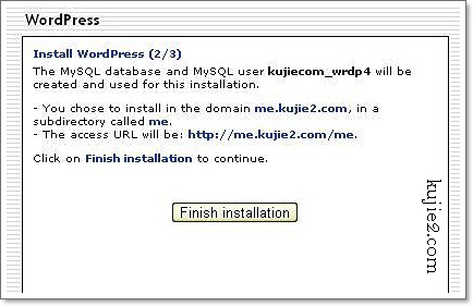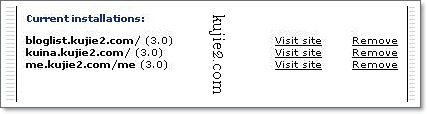WordPress telah berjaya di install dah boleh klik Visit Site untuk menatap hasil kerja keras anda sebentar tadi! ( kuina.kujie.com tu blog adik saya )