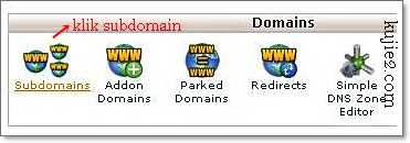 2. Dibahagian Domains, klik subdomain