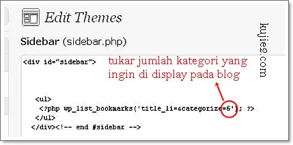Proses ini berulang-ulang setiap kali kita add link atau tambah kategori baru. Sekiranya kategori yang ada lebih dari 6 , edit tambah jumlah tersebut pada sidebar.php.