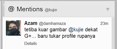 Baru je tukar, terus ada yang mention di Twitter, alert sungguh korang dengan makcik ye…