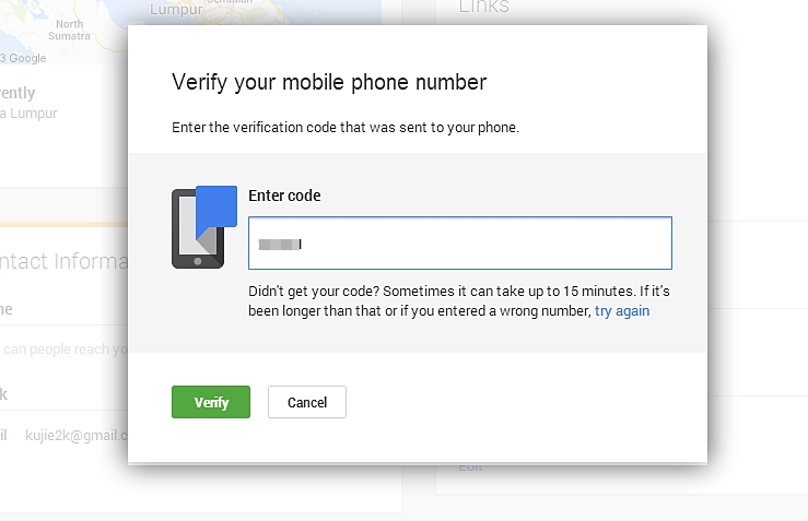 Pagi tadi saya dapat email dari Google untuk tukar Google+ Custom URL. Saya cuba aktifkan url tersebut melalui telefon tapi tak berjaya. Box untuk masukkan verification code tak ada.