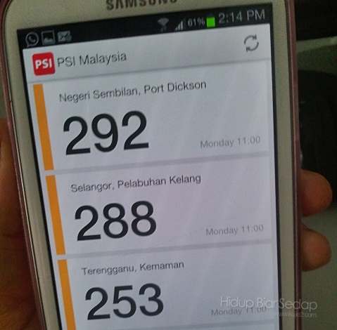 Ikuti status semasa bacaan Indeks Pencemaran Udara IPU di telefon ( Android ) – PSI Malaysia – Haze