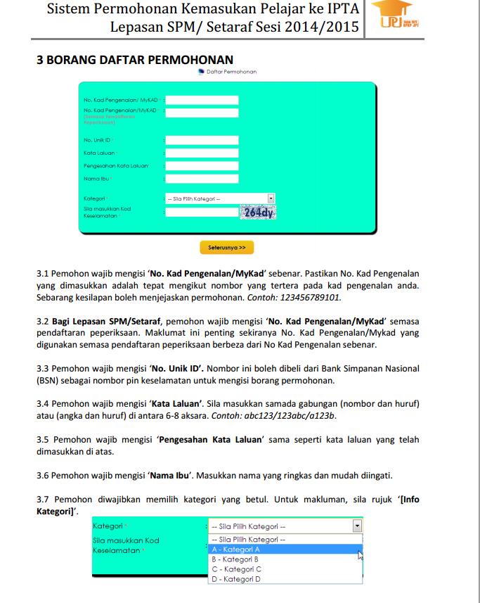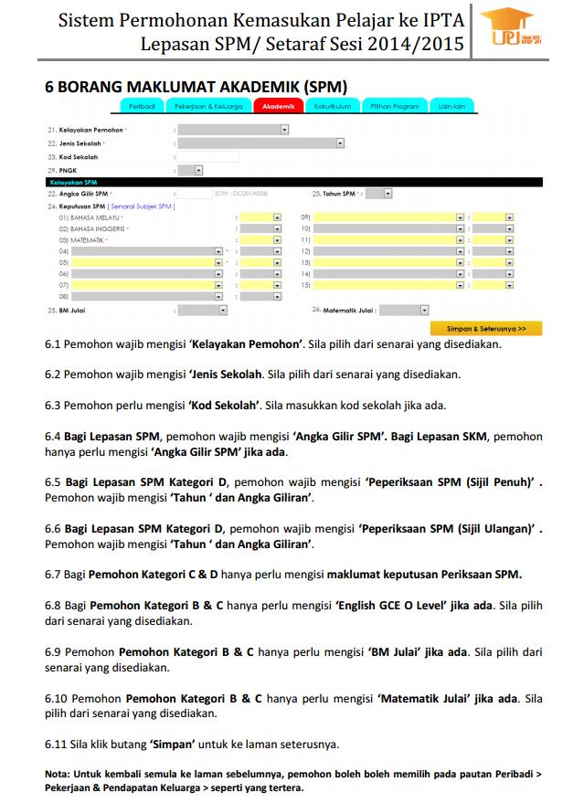 Panduan mengisi borang permohonan UPU Online