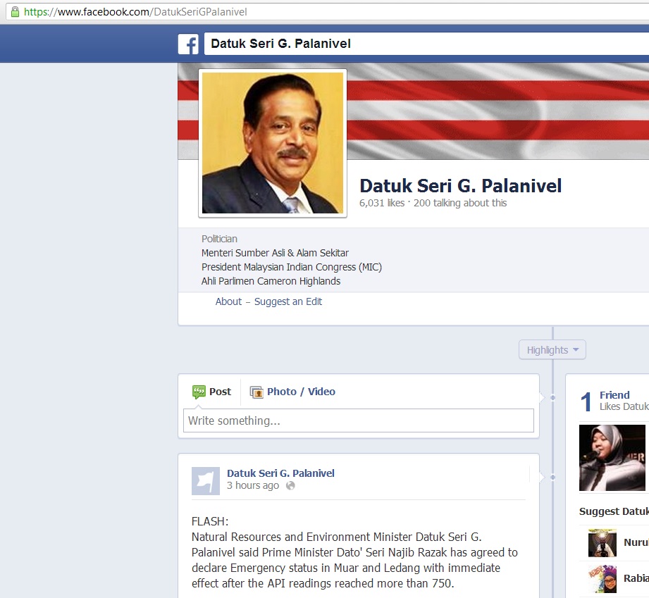 Satu-satunya rujukan adalah dari Facebook sepertimana yang dirujuk oleh Bernama Online.