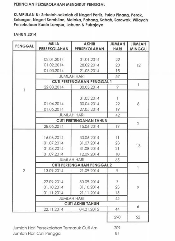 Jadual persekolahan 2014 telah dikeluarkan oleh Kementerian Pelajaran Malaysia (www.moe.gov.my).