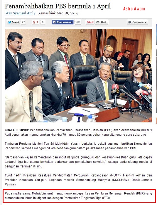Memandu balik dari sekolah tadi, terdengar berita ringkas mengenai isu terkini PMR atau PBS atau PBSMR . Sejak tahun 2012 saya dah tulis dan ikut isu PBS kerana anak saya yang berada di Tingkatan 3 terlibat dengan sistem yang sedang diuji ini. Selepas hampir 3 tahun dan peperiksaan tinggal beberapa bulan saja lagi, saya harap ini adalah keputusan akhir yang akan kita teruskan.