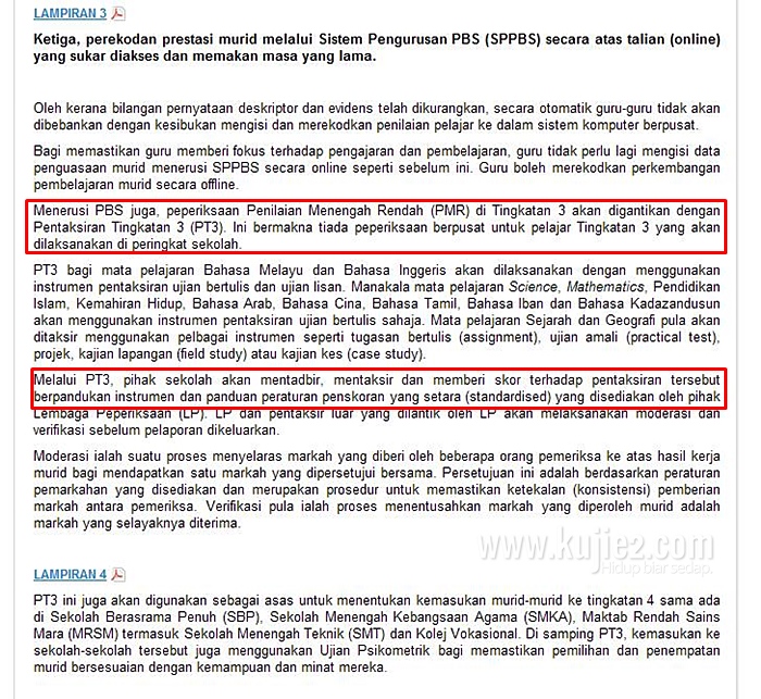 Berikut adalah apa siaran media seperti yang dikeluarkan oleh KPM ( Rujukan : Kenyataan Media PT3 )