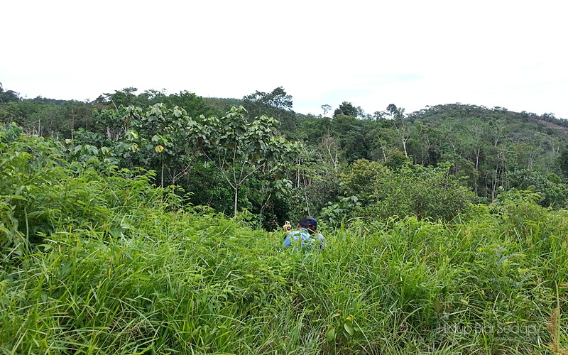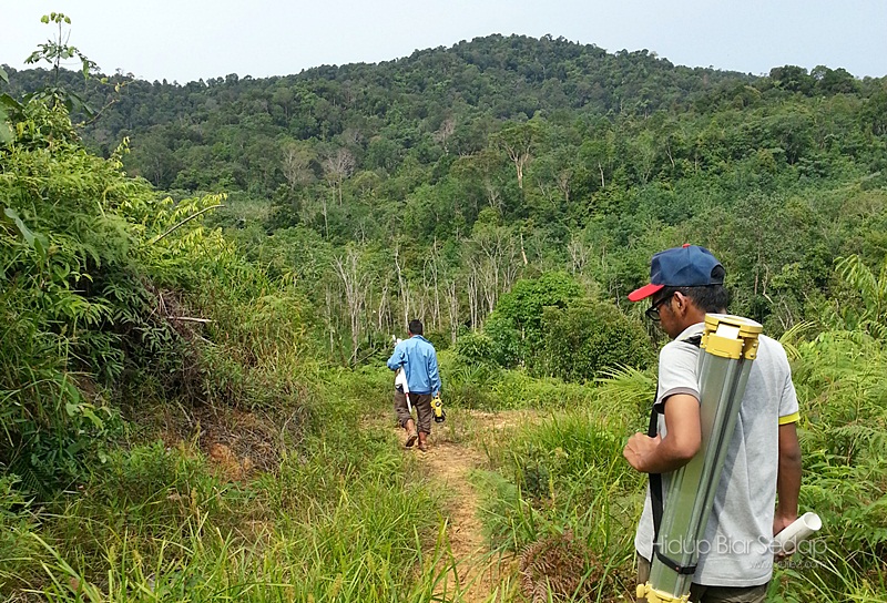 Dua beranak tu pikul tripod mendaki bukit, turun dan bukit disebelah sana barulah kebun kami.