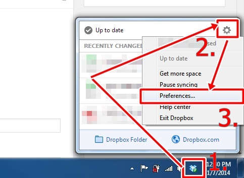 - Perhatikan ikon Dropbox pada sistem tray anda