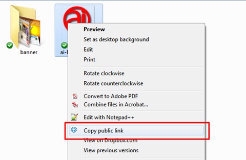 Setelah anda menyusun, gambar-gambar anda dalam folder Dropbox\Public\Gambar\…. langkah seterusnya klik-kanan gambar tersebut, kemudiannya pilih Copy Public Link.