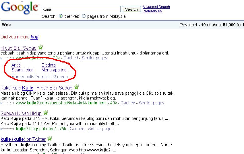 Aaaa…. apa maksudnya authority listing tu ye? Maknanya Google suggest a few other things that can be found on one’s blog ke? Atau kata kunci tu hanya pegi that page aje (as first choice lah) 🙄 (Saya galah budak belajar, bla, bla, bla – check link mohdismail.net tu pun kureng paham. Banyak makan isi badan binatang nih agaknya. Mmg fav pun hati lembu/ayam)