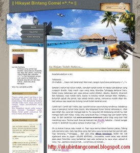 Blog template klasik yang tidak pernah ditukar sejak 3 tahun lalu berubah secara drastik ditangan saya. Buat macam hak milik sendiri. Cara saya, create satu blog untuk ujikaji bunyi ‘pop’, download template dan submit pada ‘pelanggan’ , tunggu kelulusan.