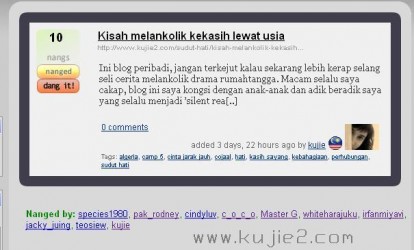 @Kujie, yup..betul tu kak….xkenal maka xcinta…add2 je..pastu dah lupa blog mana yg dieorg add…mana nak kenal dengan tuan punya blog mcm tu..