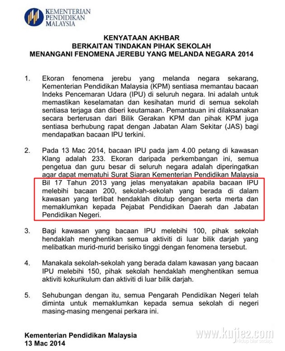 Edit 14 – 03 – 2014 – Klink untuk Bacaan IPU Jerebu Terkini 14 Mac 2014
