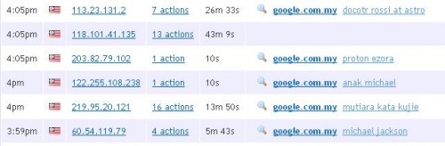 bila dah letak…dah ade trafik, klik ‘start’ > ‘visitors ‘ boleh check lokasi pengunjung dgn google map sekali