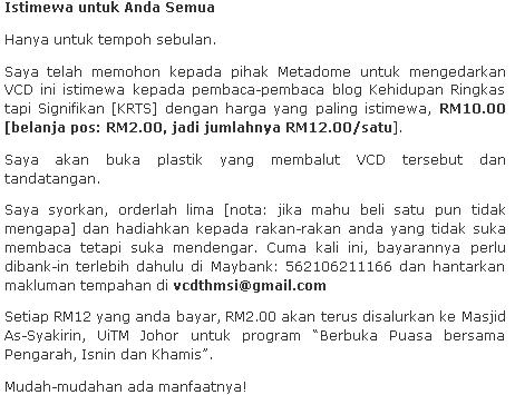 Kepada sesiapa yang ingin memesan buku dan vcd tersebut, layari laman web http://www.traveloghaji.com sekarang kerana mereka memberi diskaun untuk pembeli online.