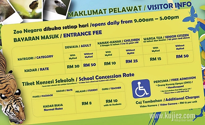 Harga Tiket Rombongan sekolah ke Zoo Negara – Kanak-kanak RM 8 dan guru pengiring RM 10