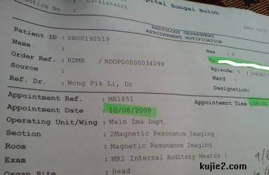 @samdaddycool, temujanji hari ni ok … kak jie org pertama buat scan… sejuk betul dlm terowong MRI tu…nasib diselimutkan…masa dlm tu dia suruh tidur..tapi mana boleh lena..dik selawat, zikir bagai…