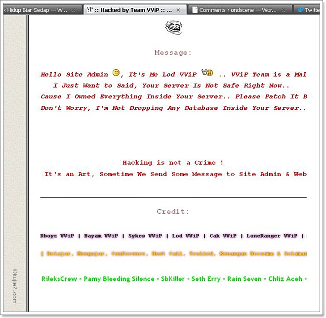Owh diorang ni hacker Malaysia, kalau tak silap geng Vvip ni ada juga dari serpihan geng Rilekscrew (kalau tak silap lah 😆 )