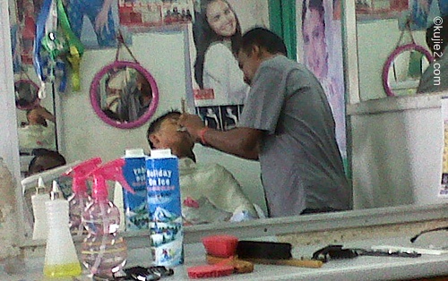 sejak dari zaman sy bersekolah awal 80-an dulu sampai la sekarang ni, memang dah macam jadi trademark kedai gunting mamak bedak holiday on ice ni..