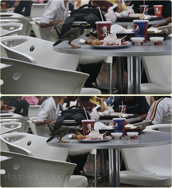 Burung semakin maju. Tak makan dedak tapi makan KFC 🙂