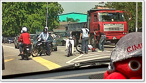 Bila lampu isyarat saya bertukar hijau, saya terus jalan tak nak tambah sesak orang lain… lagi pun kemalangan tak teruk pun….kalau2 penunggang yg terlibat membaca blog ni, harap hubungi Angreds dengan segera…hehehe