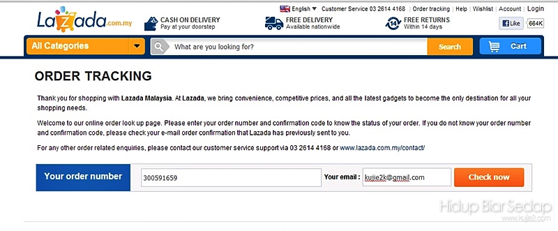 - Paste Order Number kat ruang yang disediakan dan klik “Check Now!”