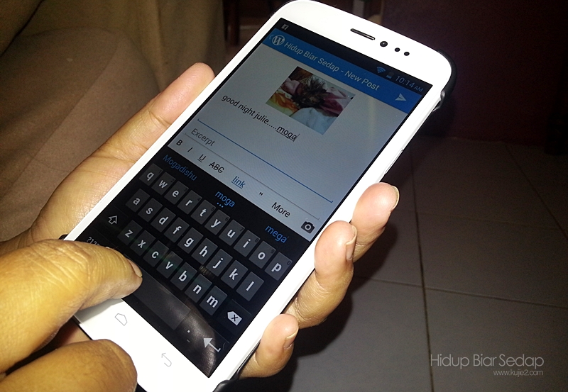 Skrin yang selesa untuk update blog. Makcik blogger macam saya mesti nak selalu buat live blogging melalui telefon. Tak boleh guna alasan jari gemuk lagi kalau dah kerap typo!
