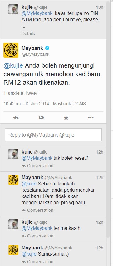Sebenarnya saya tak google pun, saya boleh tanya customer care Maybank melalui akaun Twitter mereka. Inilah jawapan Maybank.