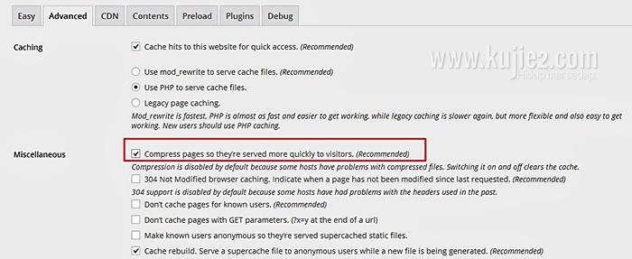 - Kalau guna plugin WP Super Cache, pada bahagian Advanced