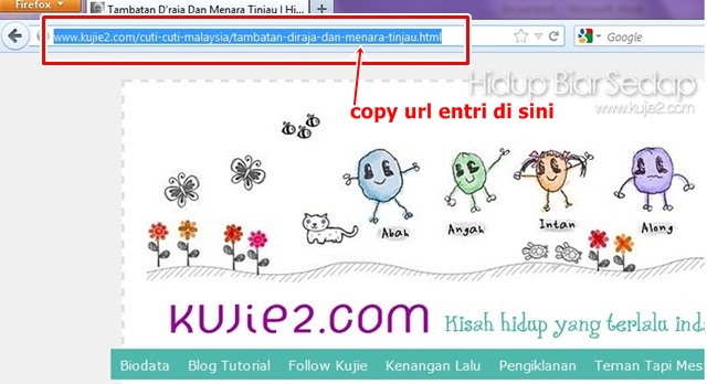 Contoh : Tambatan Diraja Dan Menara Tinjau / Hidup Biar Sedap. Hidup Biar Sedap adalah nama blog, perlu dibuang. Tinggalkan tajuk entri sahaja.