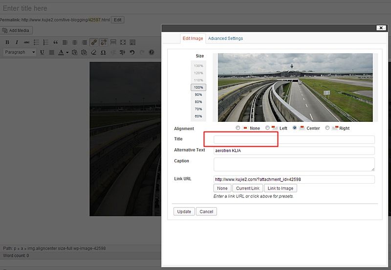 Penyelesaiannya – setiap kali sebelum publish entri, letakkan title imej secara manual. SEO Google Image juga banyak membantu kedatangan pelawat ke blog ini dan sebab itulah saya selalu meletak tajuk gambar yang bersesuaian.