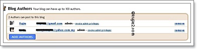 Bila dah sama taraf, bolehlah sesuka hati merampas kuasa dengan remove author yang menggunakan email yahoo tersebut. Sekarang blog tersebut hanya boleh dilogin oleh akaun gmail.