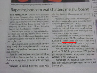 Sebenarnya , itu bukan pertama kali ‘milik saya’ diterbitkan didalam Sinar Harian. Pada Rapat 060708 , Forum Teratak Santai juga terpampang di akhbar ini.