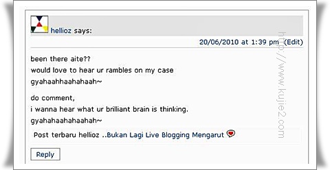 EDIT : Ada orang email suruh saya tutup atau delete entri ini . Terimakasih kerana menghantar email walaupun ada beberapa fakta boleh ditafsirkan fitnah. Saya ambil nasihat yang baik saja, yang lain tu, urusan dia sendirilah. Memandangkan entri ini ditulis atas permintaan hellioz sendiri , jadi saya rasa semua komen orang lain yang tidak bersangkut saya delete. Saya juga bersalah kerana membiarkan orang lain komen.