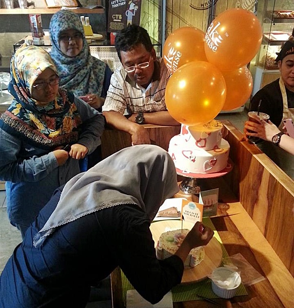 Tapi kali ini, dia ikut saya pergi program yang membabitkan blogger. Petang Sabtu, kami sekeluarga ( suami dan intan ) ikuti kelas menghias kek bersama beberapa blogger di Cake Sense. Pertama kali suami saya ikut untuk aktiviti seperti ini. Sebelum ini dia pernah juga temani saya ke MSMW ( Malaysia Social Media Week ) .