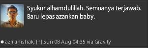 wah..selamat menjadi bapa kepada bro azman ishak..anak sulung tu.