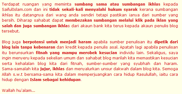 sbb tu saya xbrape nk taksub sgt dgn pendapatan dr iklan kt blog ni. hindarkan menda yg ada keraguan