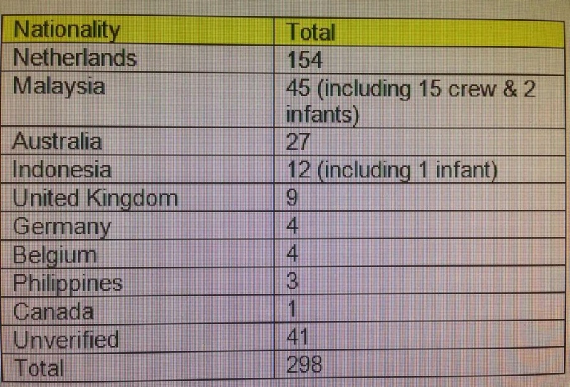 Senarai penumpang pesawat MH17 yang dikeluarkan oleh Malaysia Airlines : 45 daripadanya adalah rakyat Malaysia.