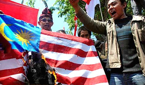 Indonesia berdemo menentang pemerintah Malaysia, kerana polis dan pemerintah Malaysia menyelamatkan pembantu rumah Indonesia yang didera dan dirogol. Bukankah itu aneh.