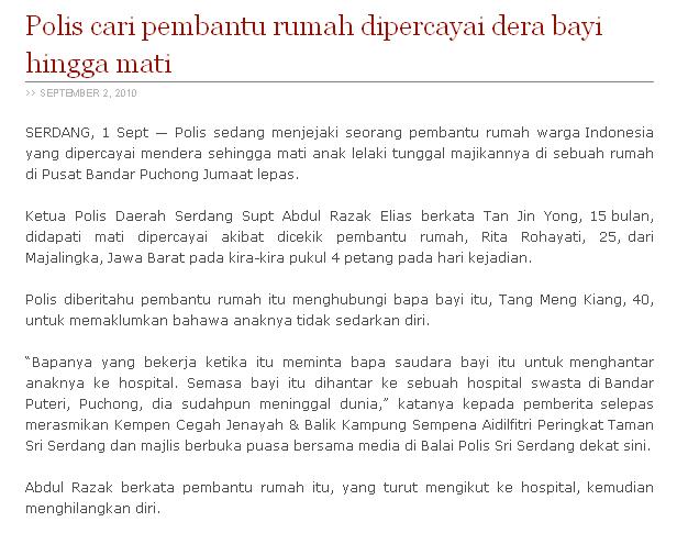 Pembantu Rumah Indonesia Dera Bayi Hingga Mati