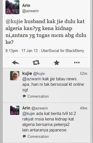 mmg bila sebut algeria teringat kak suami kak jie.. syukur suami kak jie dah balik sini.. apa pun, moga rakyat kita yg terlibat selamat semuanya..