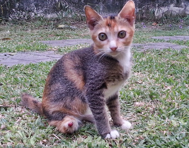 16hb Ogos 2014 – Bawa Alice balik ke rumah. Kurus dengan kepala yang besar. Waktu ini Alice dijangka berumur 10 minggu.