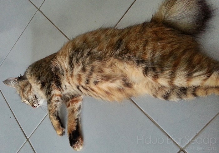 Gemok dia lain macam je… bukan lemak tapi perut yang pejal dan berisi. Sensitif pula tu. Dia kerap berbaring kat lantai sejuk macam ni.