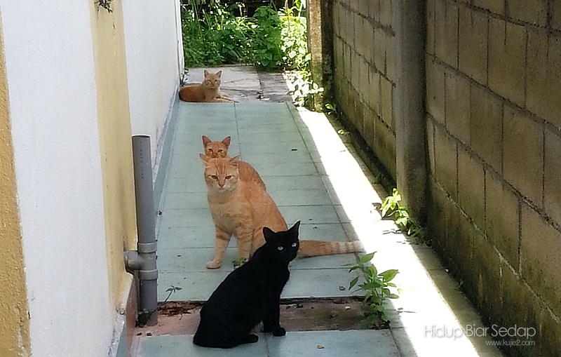 Saya bukan pemilik kucing-kucing ini tetapi kami berkongsi ruang hidup bersama. Bila dah sentiasa ada dipersekitaran rumah, saya yang akan bagi kucing-kucing ini makan. Kalau saya goreng ikan 2 ekor, saya akan lebihkan seekor untuk ‘mereka’.