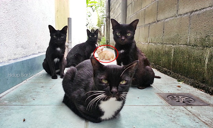 Asal usulnya kucing kat rumah ini, ada 2 ekor ibu kucing yang sarat mengandung berkeliaran di sekitar rumah. Saya bagi nasi tiap hari atas sebab belas kasihan.