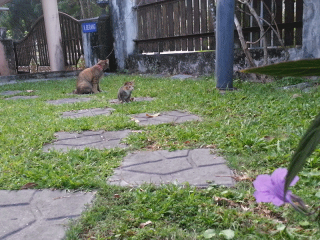 Ini gambar sekeping sekeping , kemudian dibuat dlm gif. Yg belakang tu Julie, kucing betina yg juga diselamatkan setahun lepas.