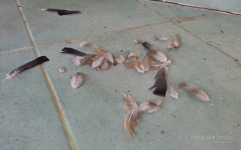 tinggal bulu-bulu burung je… ngeee.. ganas kucing tue.