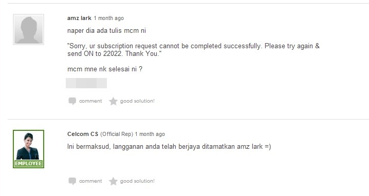 alhamdulillah selama ini guna Celcom tak ada masalah ini semuga tiada di masa depan