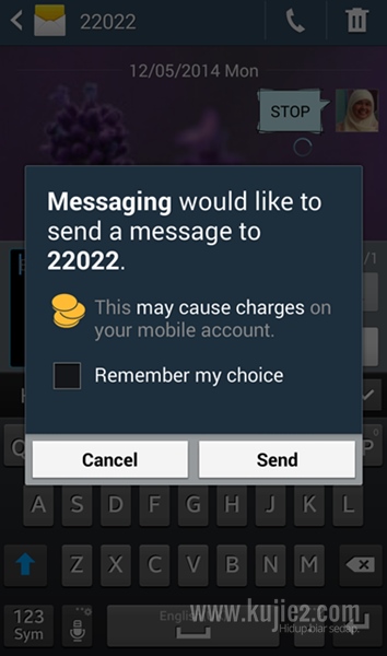 Sebelum SMS di hantar, saya terima amaran SMS ini mungkin akan dikenakan bayaran.